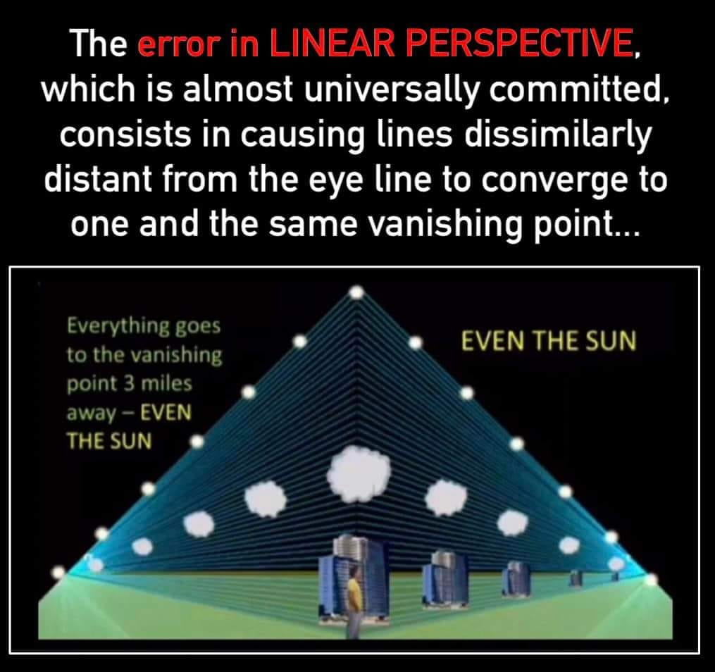 Perspective Causes Objects to Disappear: Flat-Earthers propose that perspective causes objects to become truncated and vanish from the bottom up as they recede into the distance, as if they are sinking into the horizon. This corresponds to the real-world “Rules of Perspective”, where objects become truncated as they recede into the compression line of the geometric horizon when viewed from the planar surface of a Flat Earth.