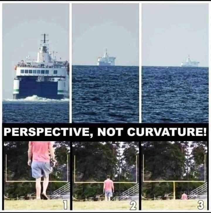 Perspective, Angular Resolution Limitations, and Compression Effects: In a Flat Earth Model, the hulls of ships are expected to disappear first due to perspective, angular resolution limitations, and compression effects as the water meets the sky. This is a widely known fact in science and perspective. But they can easily be brought back into view using the Nikon P-1000 camera, thereby, proving The Earth is Flat, which has been done thousands of times. A ships “sinking” over the apparent horizon bottom first is merely a trick of perspective, a “vanishing point” effect where distant objects appear to disappear bottom-up as they get farther away. Using a camera like the Nikon P-1000, you can zoom in on a ship that appears to have disappeared, bringing it back into view. This proves the ship was never hidden by a curve, as Heliocentrists like to assert.