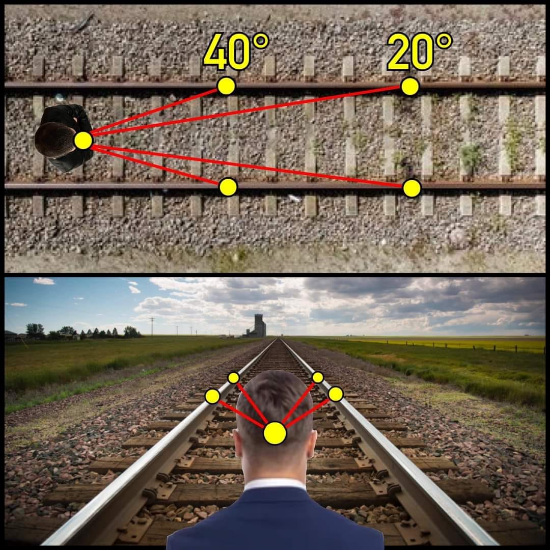2. Another cause for this angular resolution limitation is the fact that the observer is looking from ground level out to the horizon line where the ocean meets the sky. Just as when we see railroad tracks appear to compress into a convergence line in the distance, we also experience this same convergence effect with the ocean “line” meeting the skyline, which becomes the apparent horizon. Again, as in the apparent convergence of railroad tracks in the distance, we know that the railroad tracks do not literally converge in the distance, but rather, they go on for many, many more miles beyond our ability to resolve them. The compression line is where angular resolution drops off considerably, and eventually compresses into vanishing point. However, something else happens when the observer is a ground level. And it is most acute when the observational mechanism is literally on the ground. When viewing at ground level, the bottom portion of buildings, receding ships, and/or people walking away, etc…will begin to compress and appear to disappear bottom first due to the particular low height of the observer. At a low observational height, the horizon line is compressed, but the upper portion of an object remains in full view, since it does not exist in the compressed horizon line.