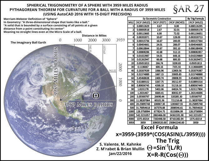 Spherical Trigonometry of a Sphere With 3959 Miles Radius Done With AutoCAD With 15 Digit Precision: